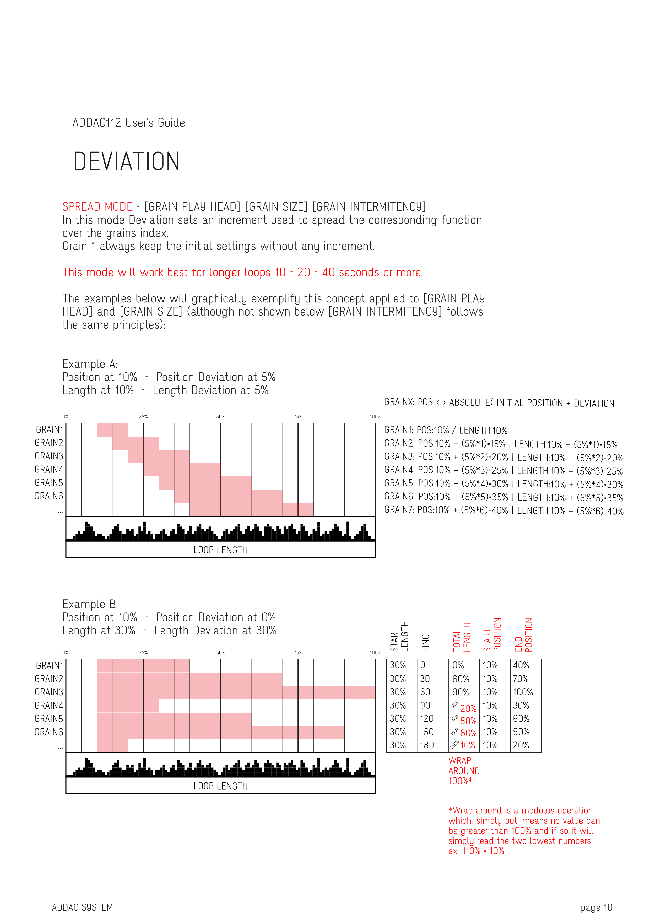 GRAIN1: POS:10% / LENGTH:10% GRAINX: POS <=> ABSOLUTE( INITIAL POSITION + DEVIATION GRAIN2: POS:10% + (5%*1)=15% | LENGTH:10% + (5%*1)=15% GRAIN3: POS:10% + (5%*2)=20% | LENGTH:10% + (5%*2)=20% GRAIN4: POS:10% + (5%*3)=25% | LENGTH:10% + (5%*3)=25% GRAIN5: POS:10% + (5%*4)=30% | LENGTH:10% + (5%*4)=30% GRAIN6: POS:10% + (5%*5)=35% | LENGTH:10% + (5%*5)=35% GRAIN7: POS:10% + (5%*6)=40% | LENGTH:10% + (5%*6)=40%
