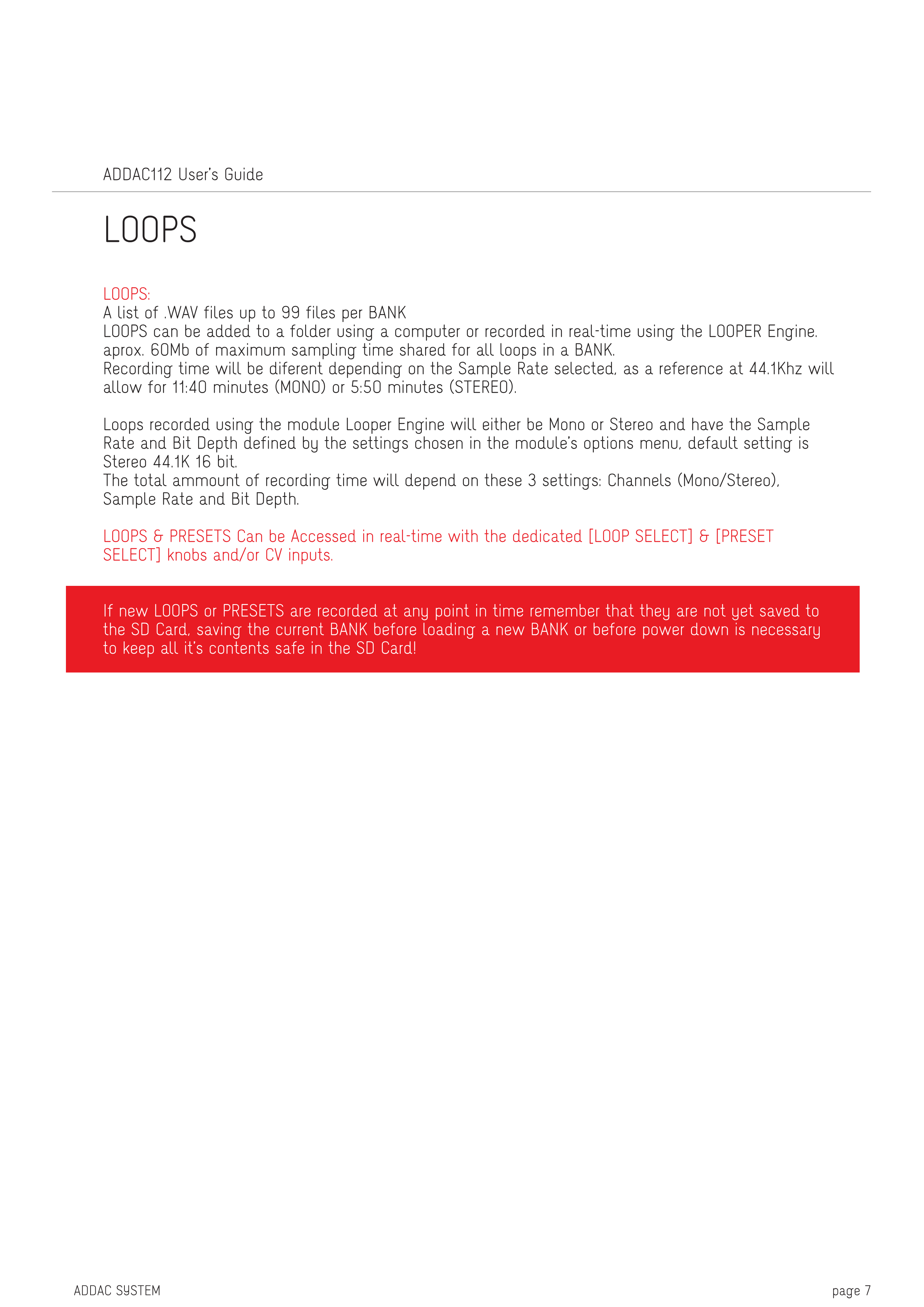 ADDAC112 VC Looper: Manual
