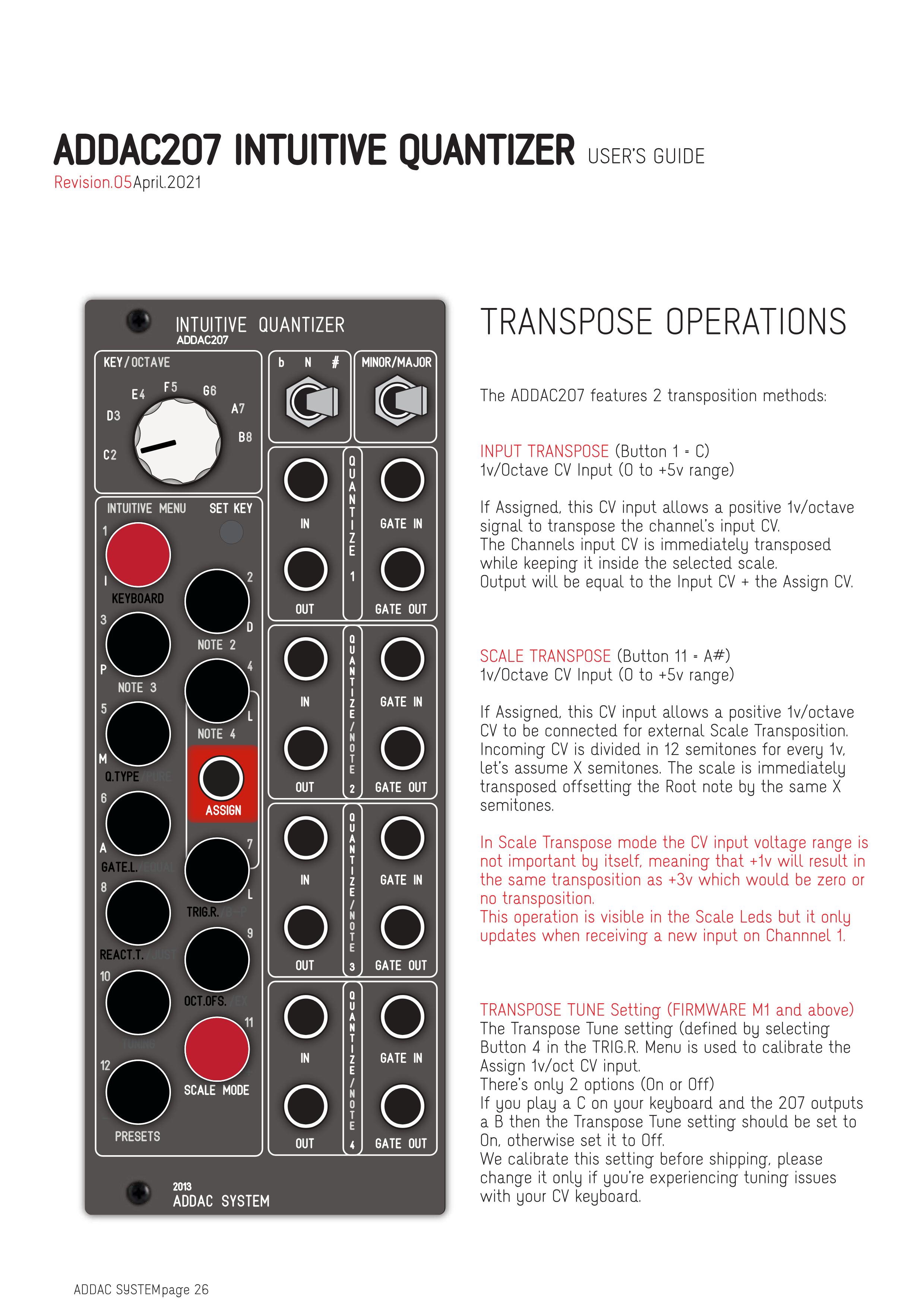 ADDAC207には2つのトランスポーズ方法があります: