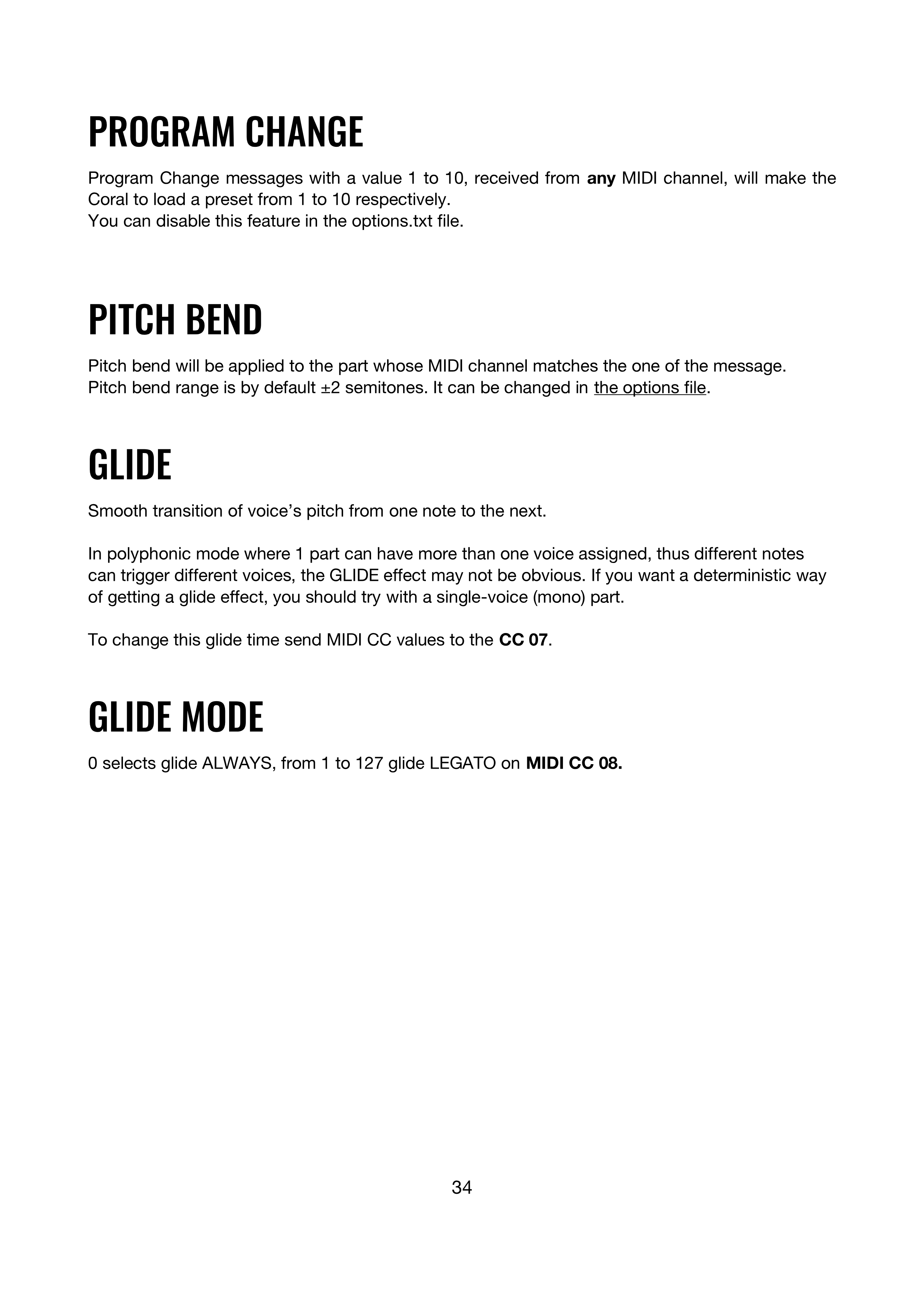 0はglide ALWAYSを選択し、1〜127はMIDI CC 08でglide LEGATOを選択します。