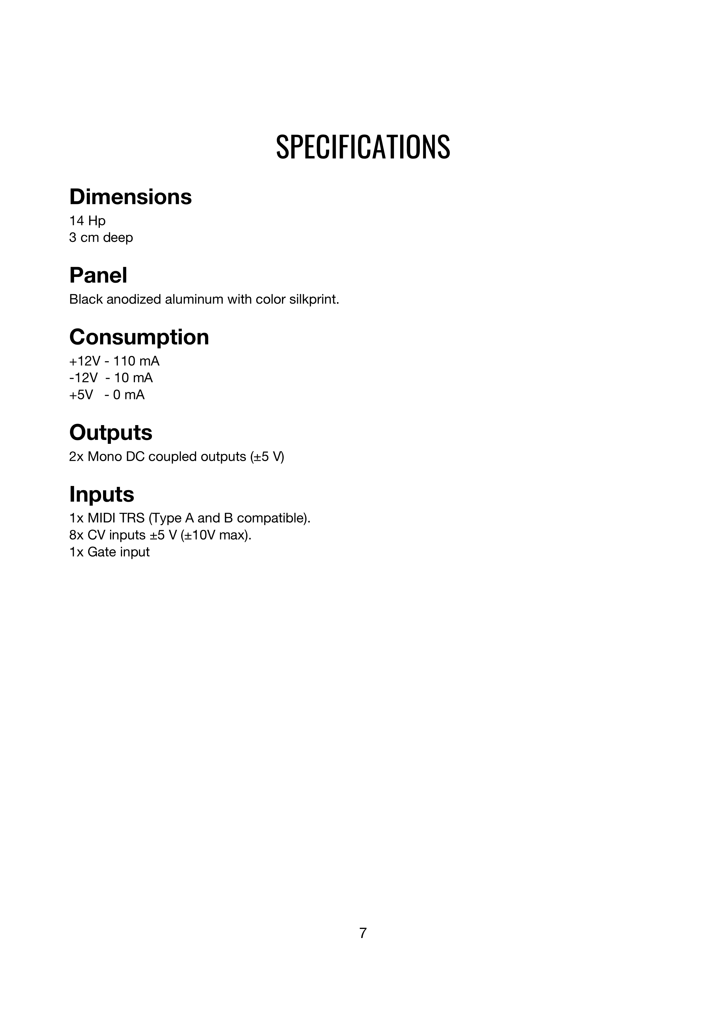 8x CV inputs ±5 V (±10V max).