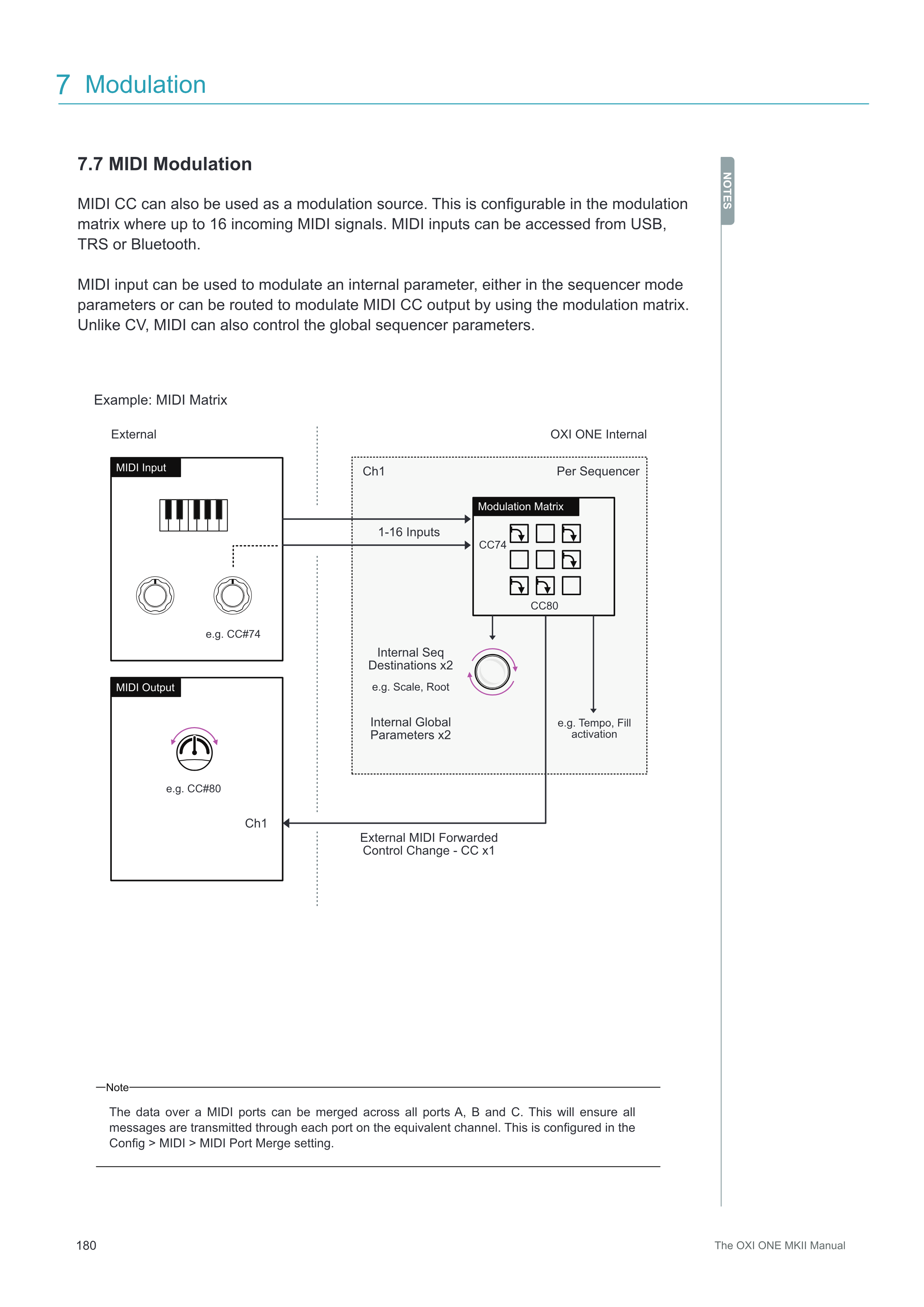 MIDI CCもmodulationソースとして使用できます。これはmodulation matrixで設定可能で、最大16の入力MIDI信号を扱えます。MIDI入力はUSB、TRS、またはBluetoothからアクセスできます。