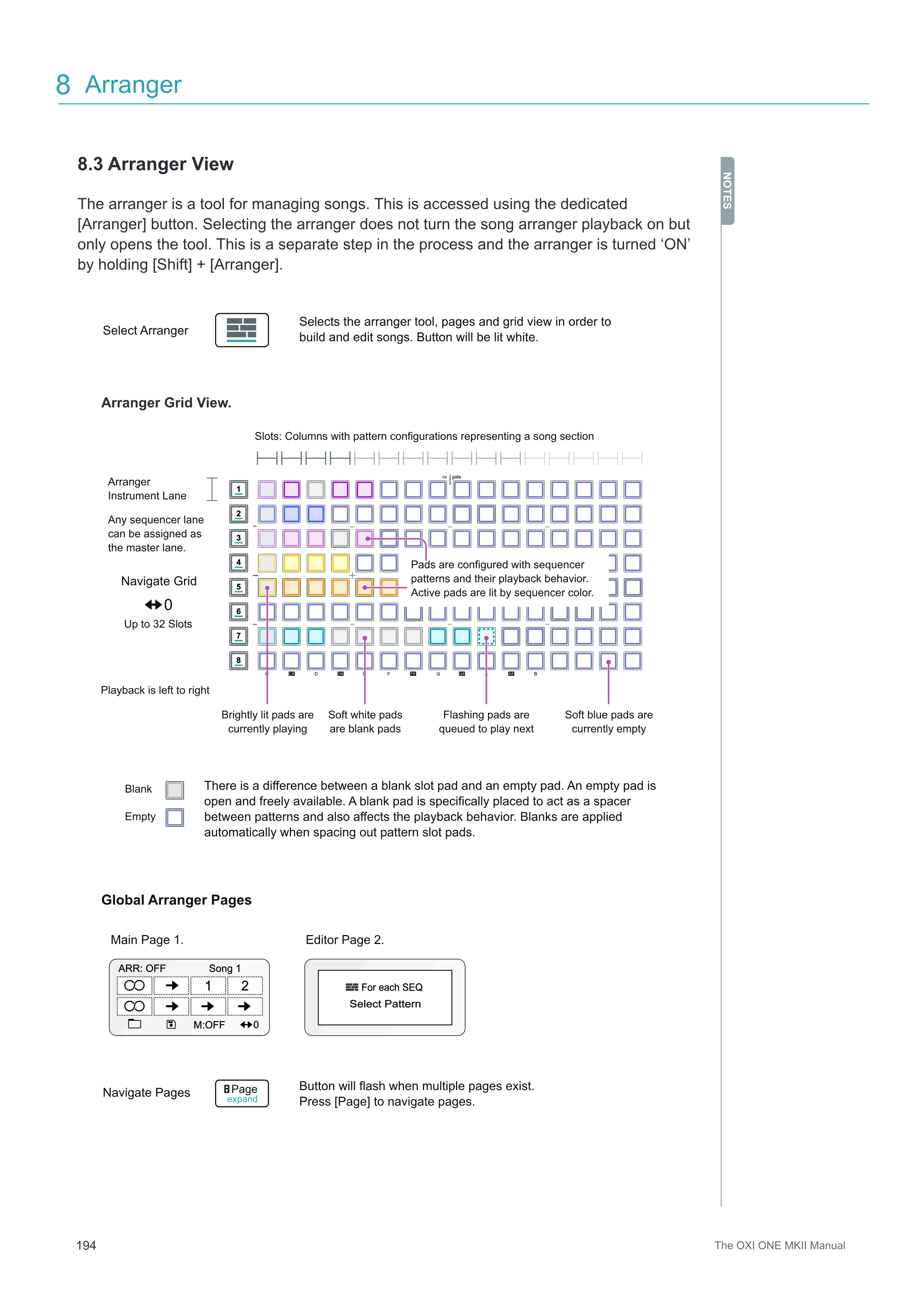 Arrangerは楽曲を管理するためのツールです。専用の[Arranger]ボタンを使用してアクセスします。Arrangerを選択してもソングのarrangerの再生はオンにならず、ツールを開くだけです。これはプロセスの別のステップであり、arrangerは[Shift] + [Arranger]を押し続けることで「ON」になります。