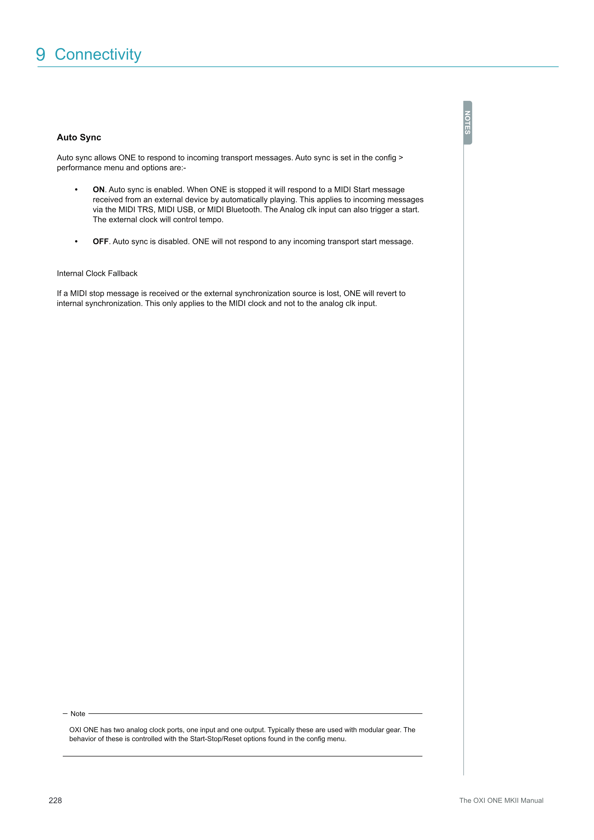 MIDI stopメッセージを受信した場合、または外部同期ソースが失われた場合、ONEは内部同期に戻ります。これはMIDI clockにのみ適用され、analog clk入力には適用されません。