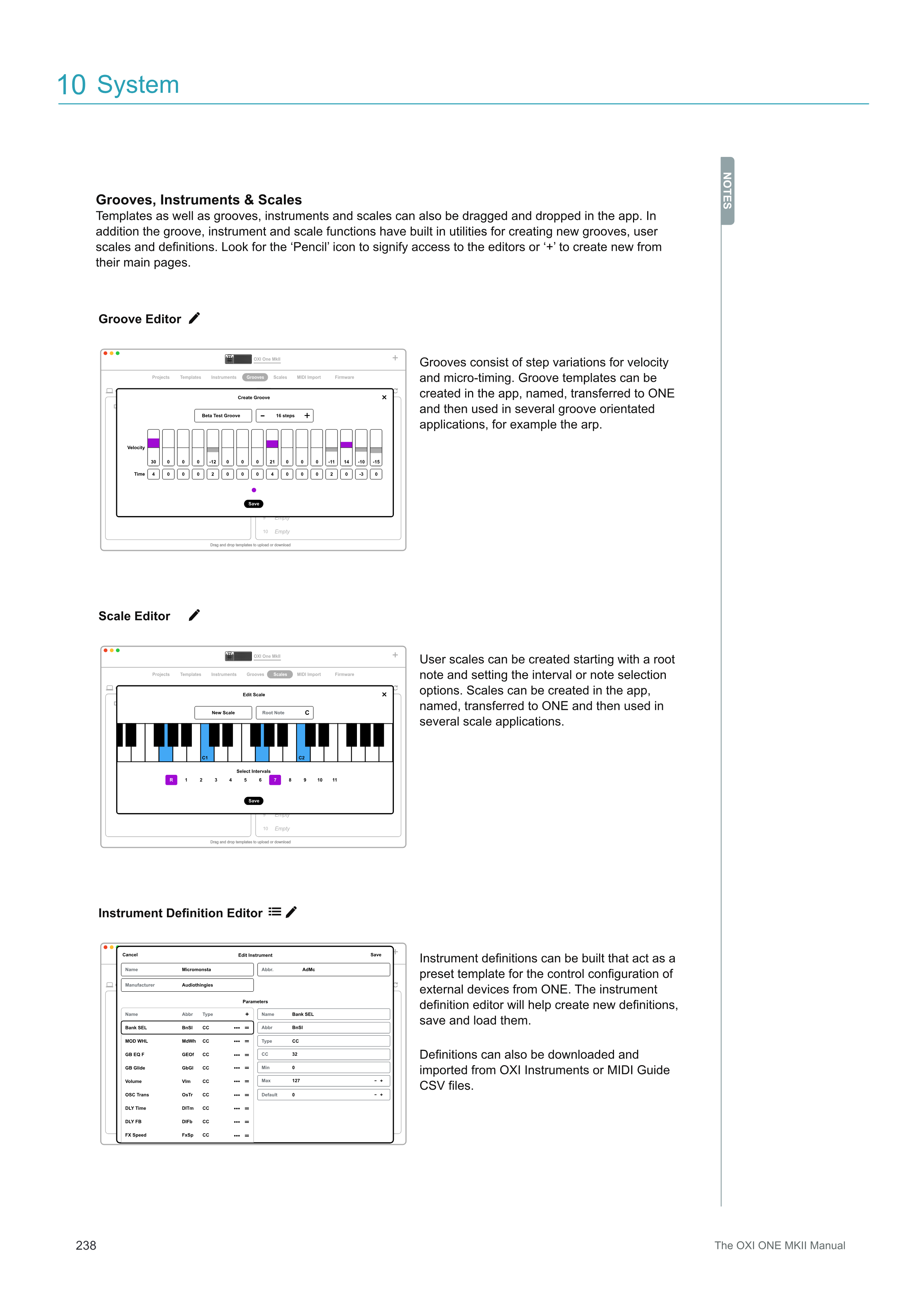 ユーザーscalesは、ルート音から始めて、インターバルまたは音符選択オプションを設定することで作成できます。Scalesはアプリで作成し、名前を付け、ONEに転送して、複数のscaleアプリケーションで使用できます。