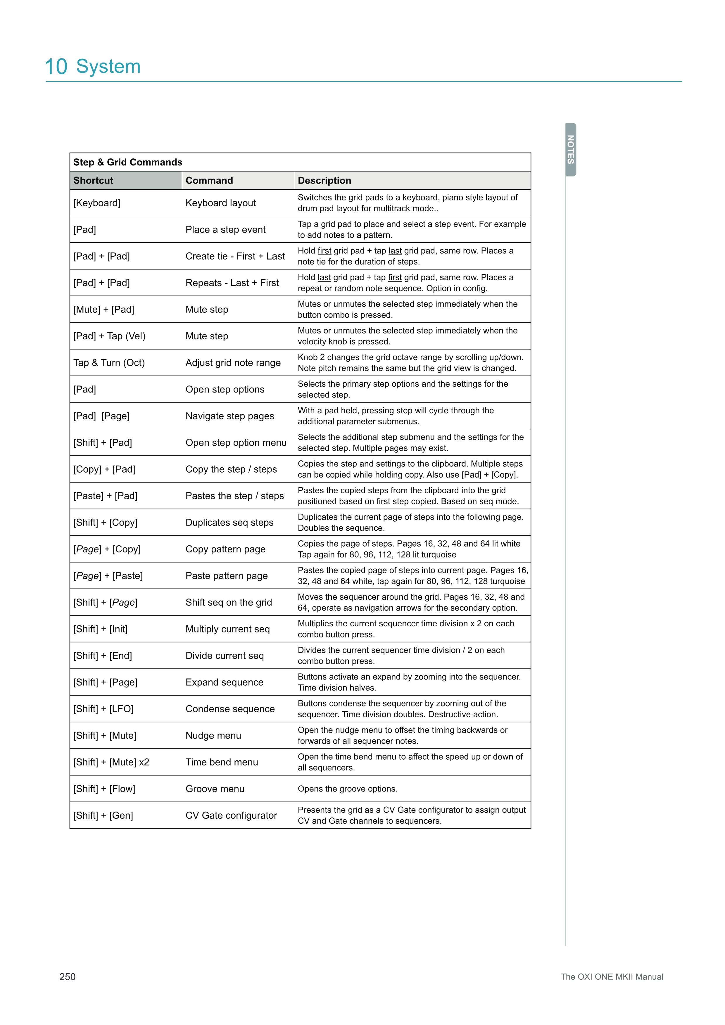 [Shift] + [Pad] Open step option menu 追加のステップサブメニューと選択されたステップの設定を選択します。複数のページが存在する場合があります。