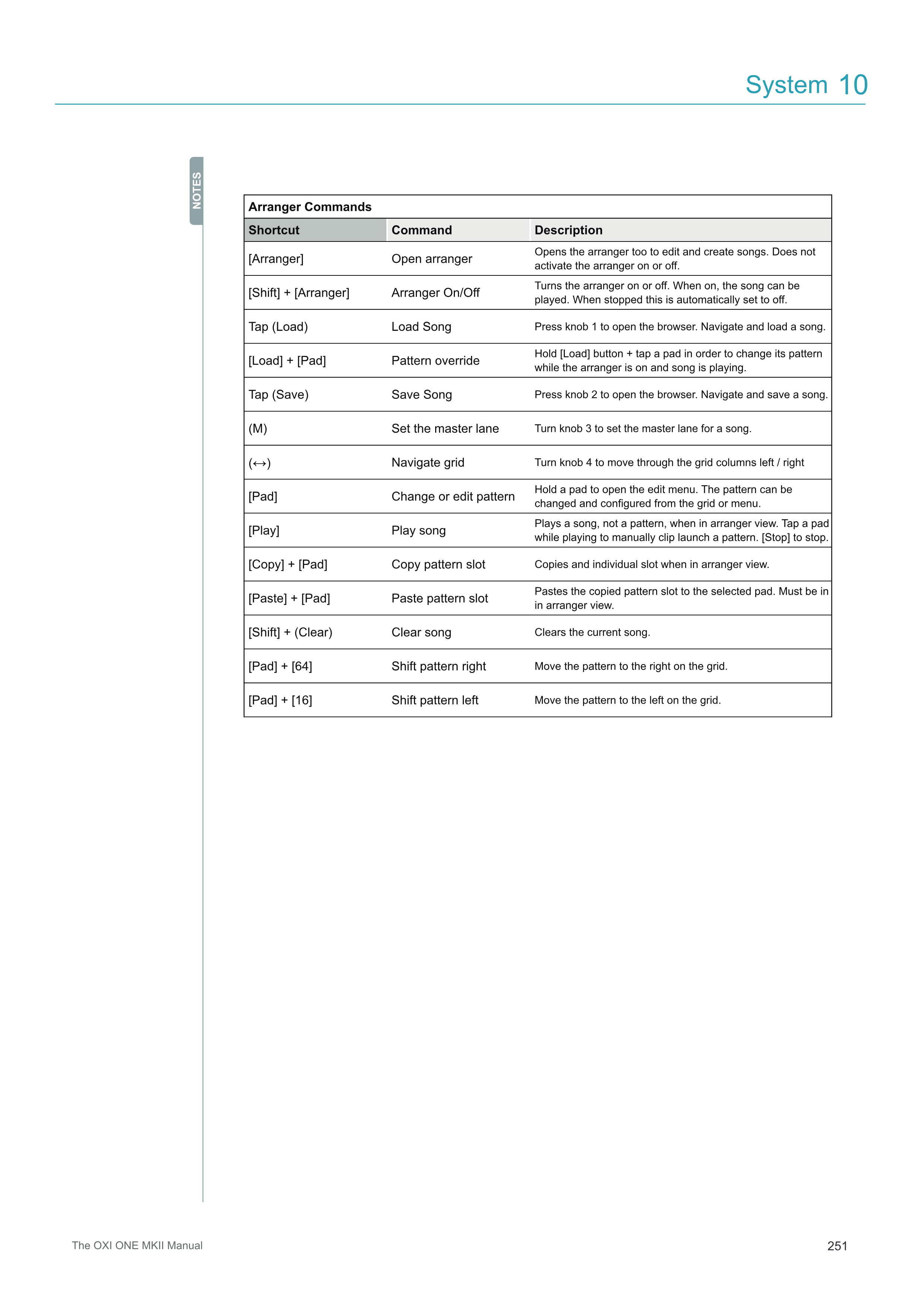 [Shift] + [Arranger] Arranger On/Off arrangerのオン/オフを切り替えます。オンの場合、songを再生できます。停止すると自動的にオフに設定されます。