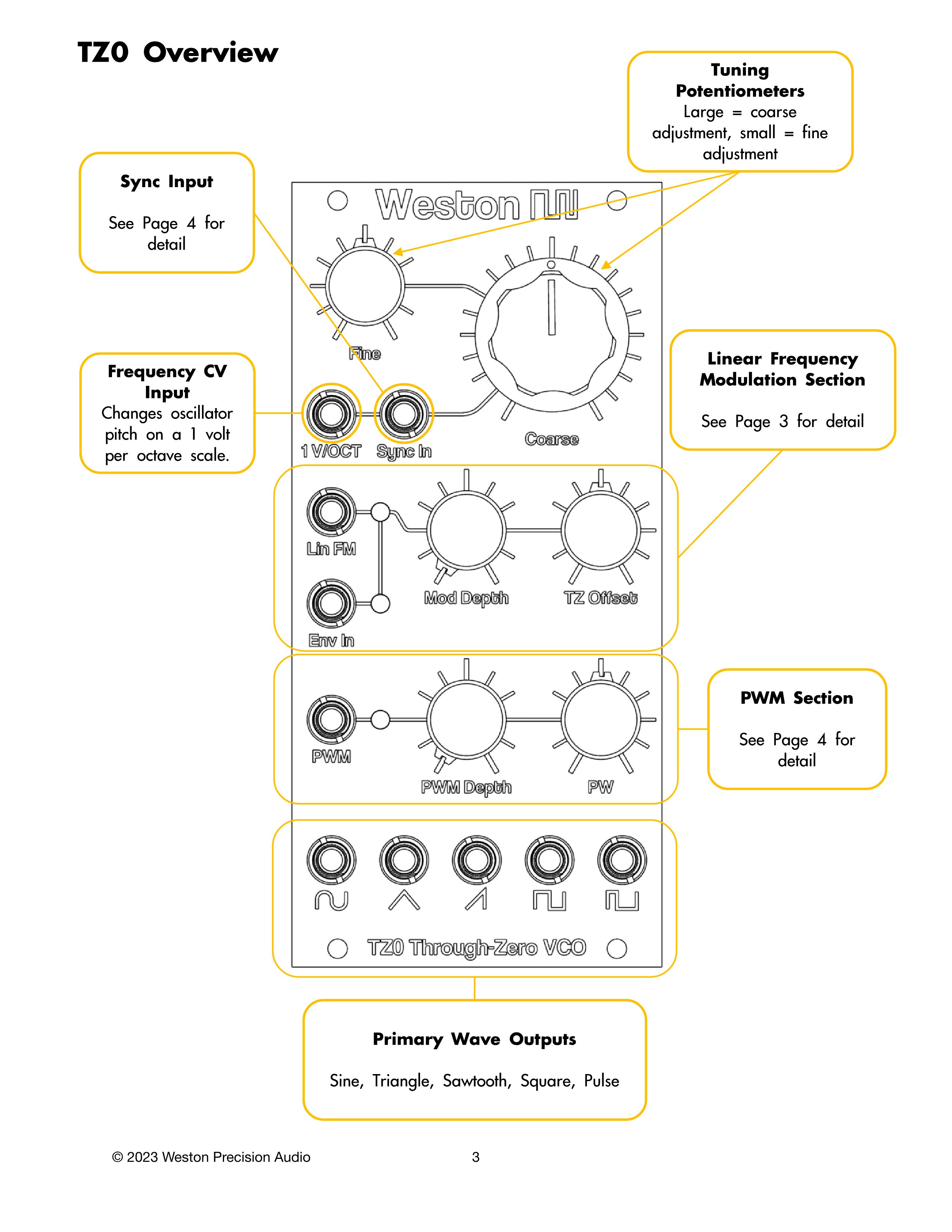 1ボルト/オクターブのスケールでオシレーターのピッチを変更します。